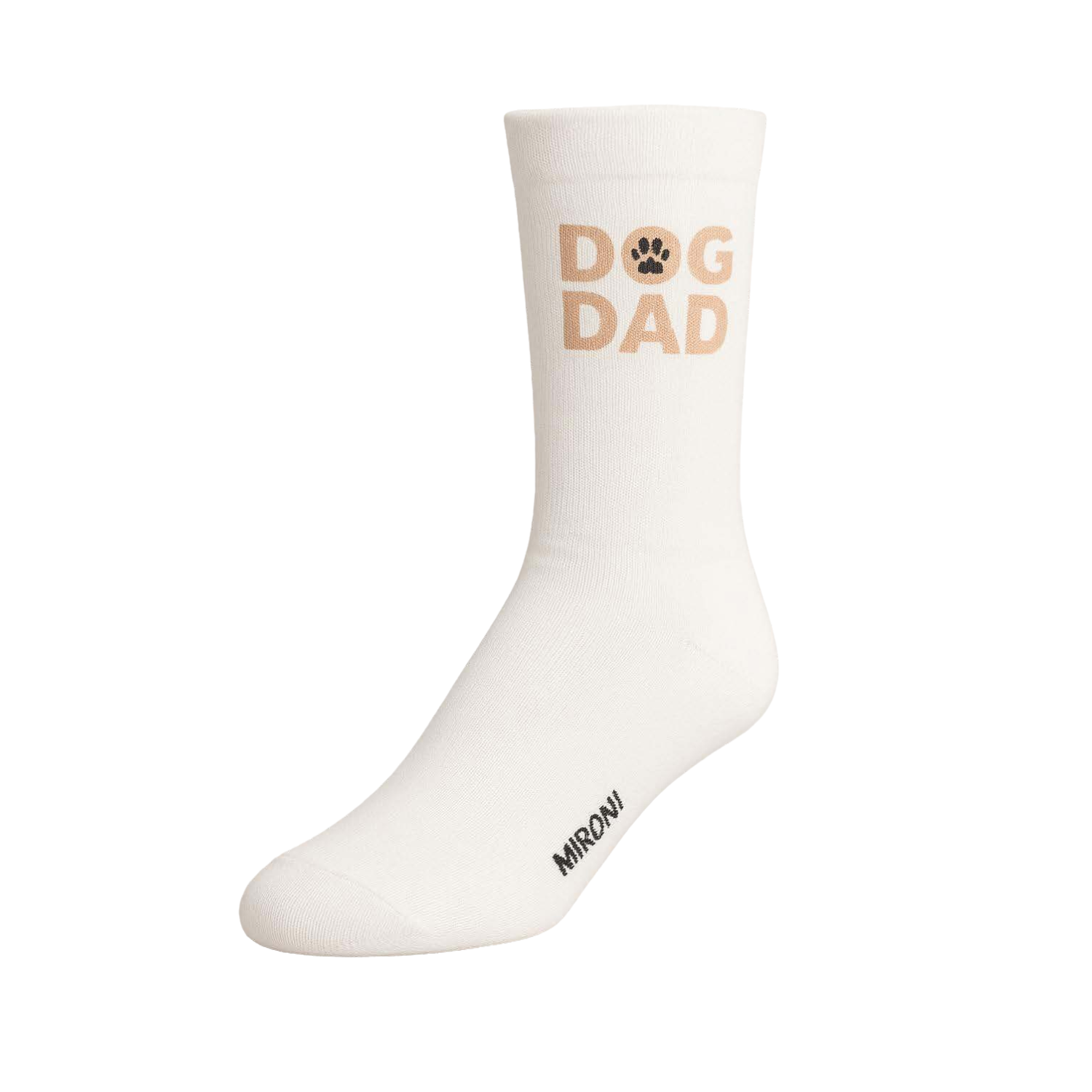 Diese weißen Socken setzen mit dem Schriftzug „Dog Dad“ ein klares, humorvolles Statement für alle, die ihr Leben mit Hund feiern. Der schlichte Textprint wirkt modern und gut lesbar und passt perfekt zum reduzierten Design. Ideal für alle, die Socken für Hundebesitzer mit Dog-Dad-Motiv und entspannter Aussage suchen.