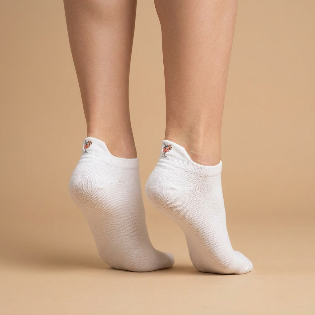 Cheers auf dein Outfit. Unsere Drink Quarter Socken bringen Sommer-Vibes an deine Füße – mit einem kleinen gestickten Cocktail-Detail am Bund, das gute Laune macht, bevor das erste Getränk überhaupt bestellt ist.