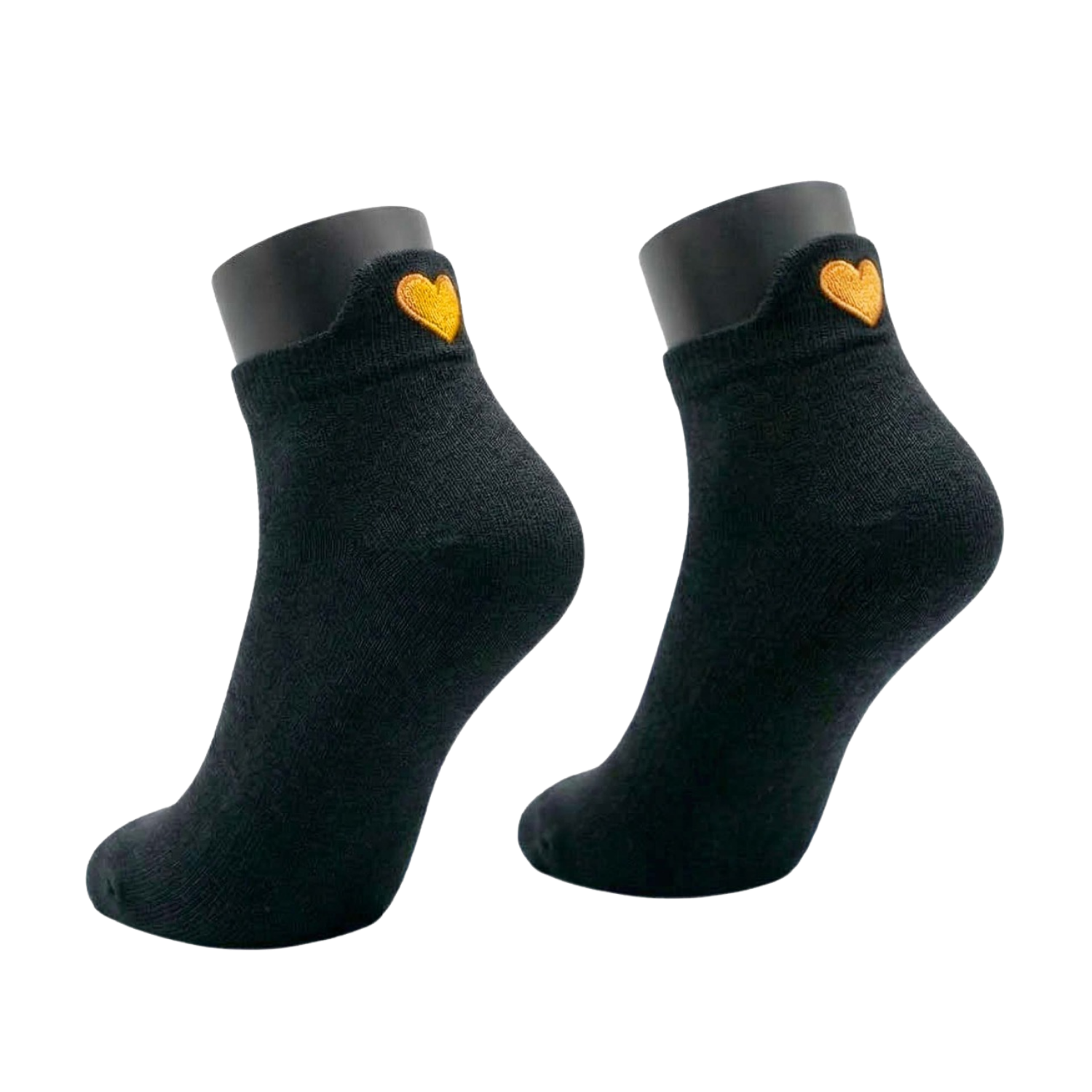 Schlicht, aber nicht langweilig. Unsere Black Heart Quarter Socken setzen mit dem kleinen Herz-Detail am Bund einen dezenten Akzent – perfekt für alle, die es elegant mögen, aber trotzdem Persönlichkeit zeigen wollen.